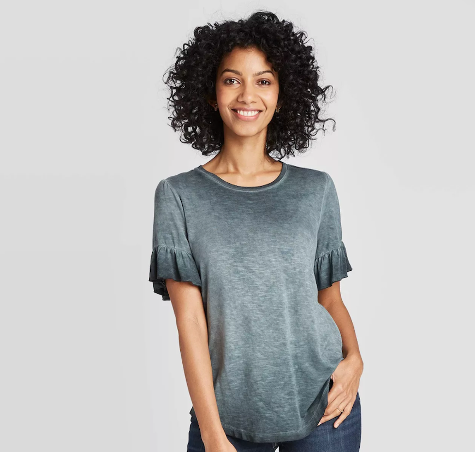 Need something to throw on with jeans that feels like you tried, even if you're not leaving the house? Try this pretty tee with a broken-in style and stylish details like ruffled sleeves to keep it interesting. It comes in a bunch of colors - I like the stonewashed looking gray for versatility.These Sandals Are Minimal Perfection