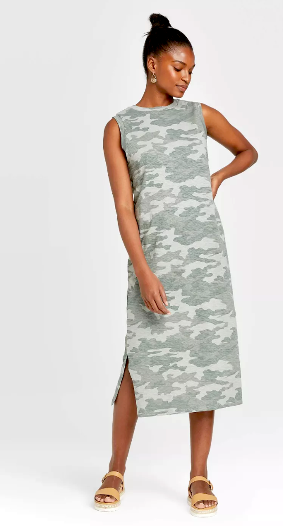 Another one of those Target buys that looks great on lots of body types is this slightly risque but incredibly stylish one-piece swimsuit. The deep plunge front might not be best for chasing kids around, but it's perfect for poolside lounging. Just imagine it for that next adults-only vacation you'll take someday.This Camo Dress Is A No-Brainer