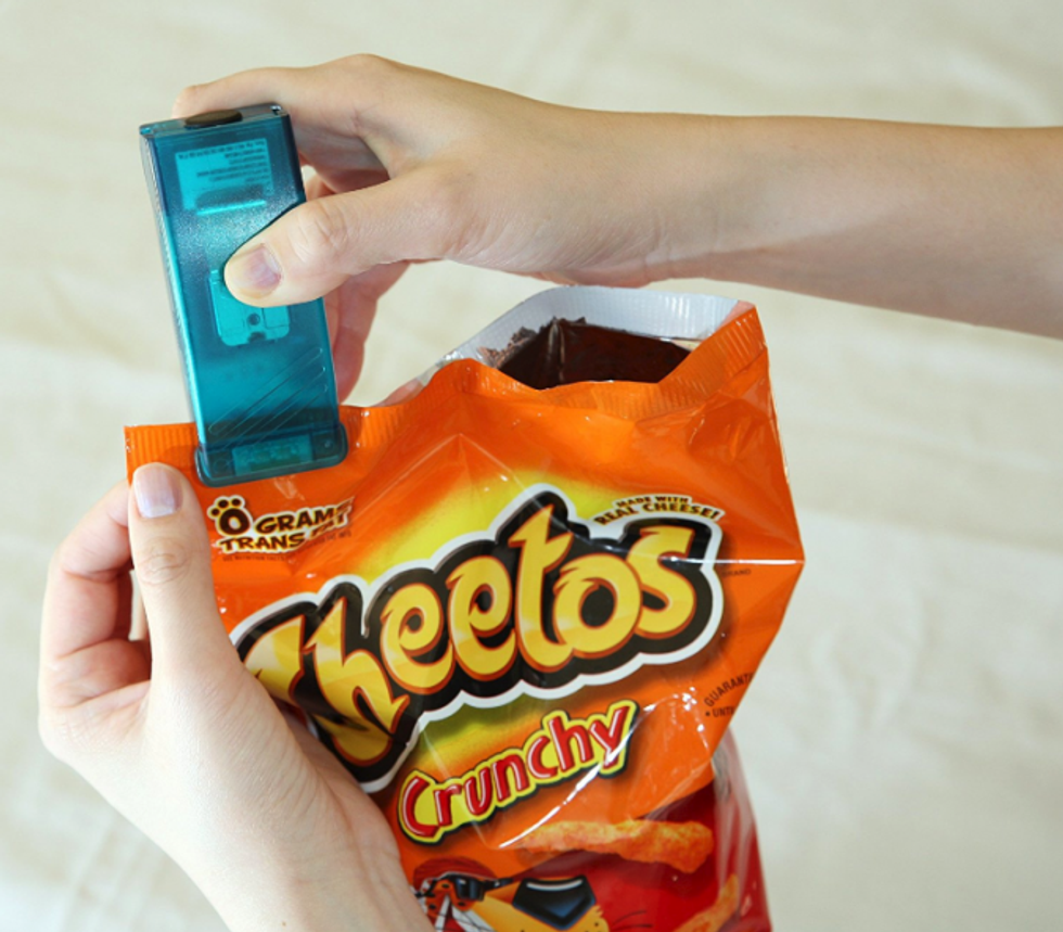 You probably have a bunch of little gadgets that need to be plugged in, but which you don't want taking up your precious counter space. It's an annoying problem to have, and until now, there was no solution. Enter: the ECHOGEAR Outlet Shelf. It can be installed over any vertical outlet in your home. It also includes a convenient cord channel to further streamline the look.This Handheld Heat Bag Sealer Seals Your Snack Bags in Seconds