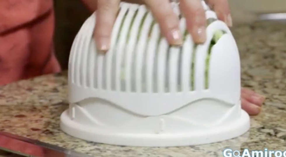 Place some vegetables in the bowl and run your knife through the built-in channels and voila! Chopped salad in about 60 seconds. And of course, you can also use it to make a fruit salad.These Magnetic Twist Ties Easily Keep Your Cables in Order