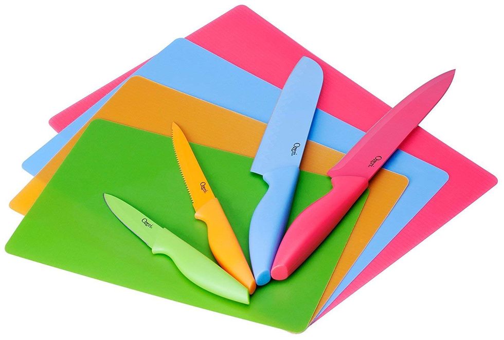 These Moscow Mule Mugs are made from 100% copper, and this set of four comes with a copper shot glass, too.This Cutting Board and Knife Set is Perfect for the Home Cook