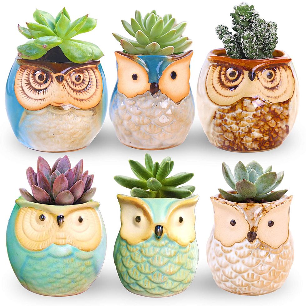 Cuter then gnomes, these owl pots make a fabulous hostess gift. Comes in a set of six, so you can use them for plants, or for storing candy, knick-knacks and office supplies.These Cactus Candles Are the Best Candles Ever