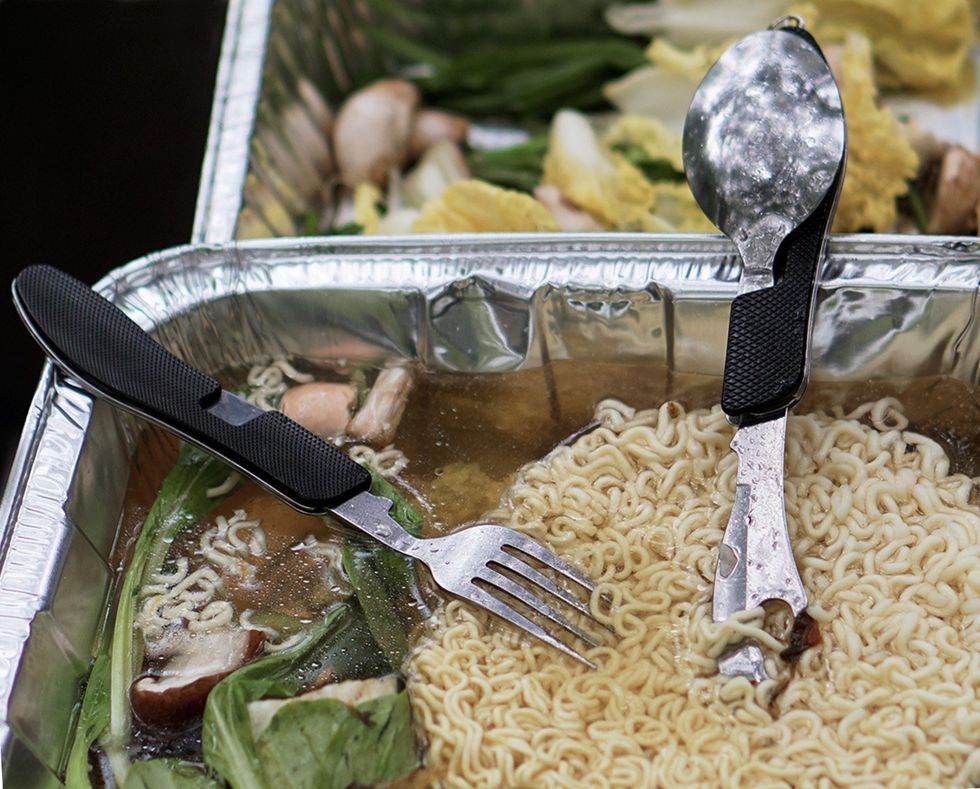 This 4-in-1 utensil is perfect for camping or long backpacking trips. It comes with a fork, a knife, a spoon, and most importantly, a bottle opener.This Handheld Fan