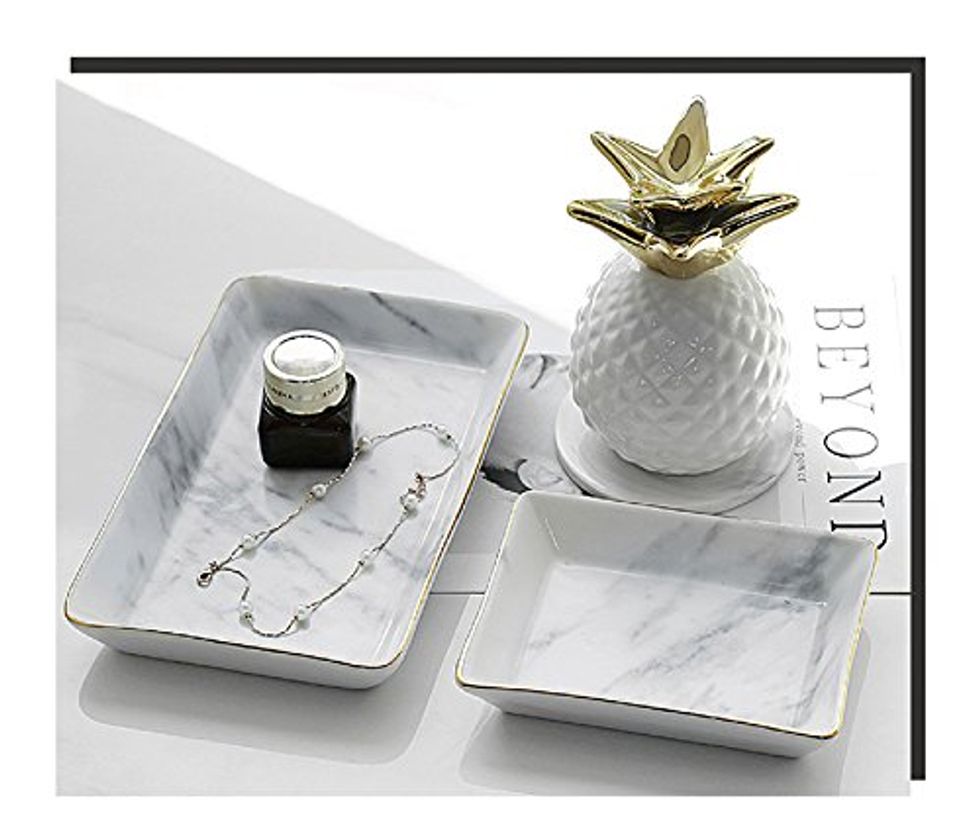 This pleated, soft, and elegant evening wrap comes in three colors: black, blush (pictured), and silver, so no matter your mom's style, you'll be able to get her one that goes with everything.This Marble Jewelry Dish/Organizer