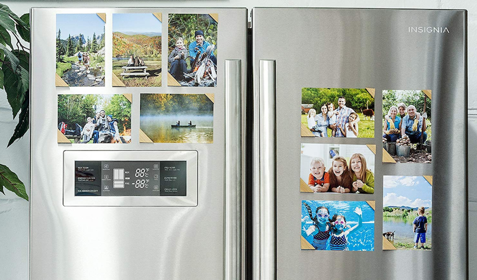 These versatile triangle wooden magnet look great on their own or arranged into cool geometric patterns, but my favorite way to use them is as photo or document corners to "frame" fridge decor. You get 10 large triangles and 10 smaller ones in each set and they're strong enough to hold five pieces of paper at once! They'll instantly make your fridge clutter look organized and intentional.This Truffle Hot Sauce Is Good Enough For Oprah