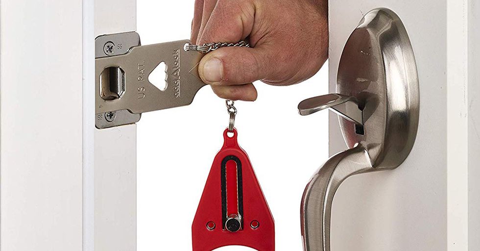 This is such an incredibly smart idea and I kind of can't believe I haven't heard of it before! For anyone who would like a little extra security — whether you're staying in a hotel or an Airbnb, the Addalock is basically a must. It fits most standard doors! All you have to do is insert the metal part into the door's strike box, close the door, and hook the red piece onto the designated spot...OK, I realize it may seem a little complicated to explain, but it can literally be installed in a few seconds. And once it's in, the door can't be opened from the outside until you remove it.Trending