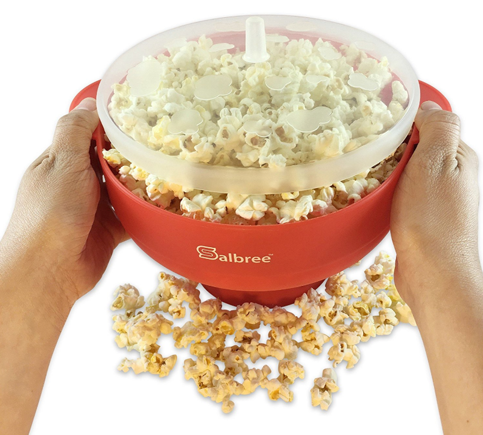 This speaker is water-resistant, rainproof, splashproof, and sandproof, making it perfect for trips to the beach or for hanging out poolside. It can play for up to 12 hours on a single charge.Pop up a Snack in This Silicone Popcorn Popper