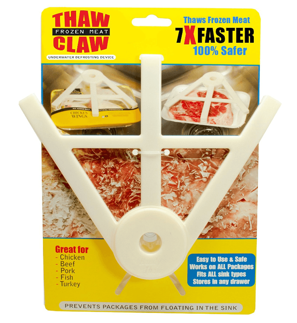 I've been trying to make an effort to eat healthier lately, so instead of shoveling handfuls of chips into my mouth between mealtimes (which is easy to do, since I work from home and have access to my kitchen at all times), I've been trying to snack on carrots and hummus or veggie dip instead. These clever little dip holders clip directly onto your plate for easy access.This Thaw Claw That Quicky And Safely Dethaws Meat