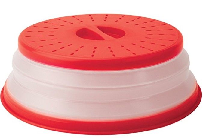 The Vented Collapsible Microwave Cover is big enough to fit over a dinner plate, making it easy and mess free to heat up just about anything.Keep the Mess Off Your Counter With This Lid and Spoon Rest