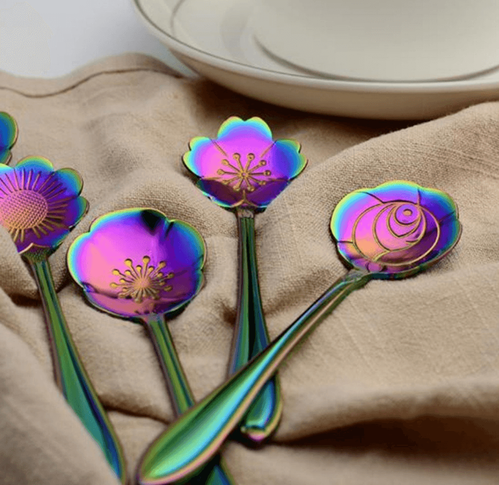 Take your tablescape up a notch with this beautiful iridescent tableware. Each spoon has a different flower pattern.Melt Your Stress Away with This Magnetic Zen Garden