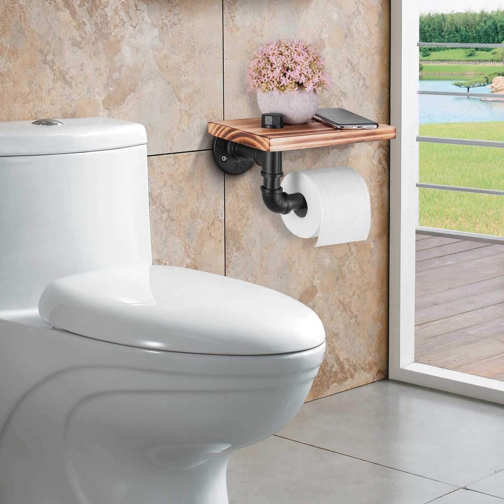 My bathroom looks a little bit run down, and this modern bathroom shelf adds a tiny bit of chic and some (much needed!) extra storage. The shelf is sturdy, easy-to-assemble, and I love the combination of wood-grain and industrial piping. I use it to keep some extra toilet paper and leave some space to set my phone down and to play some music while I'm in the shower.