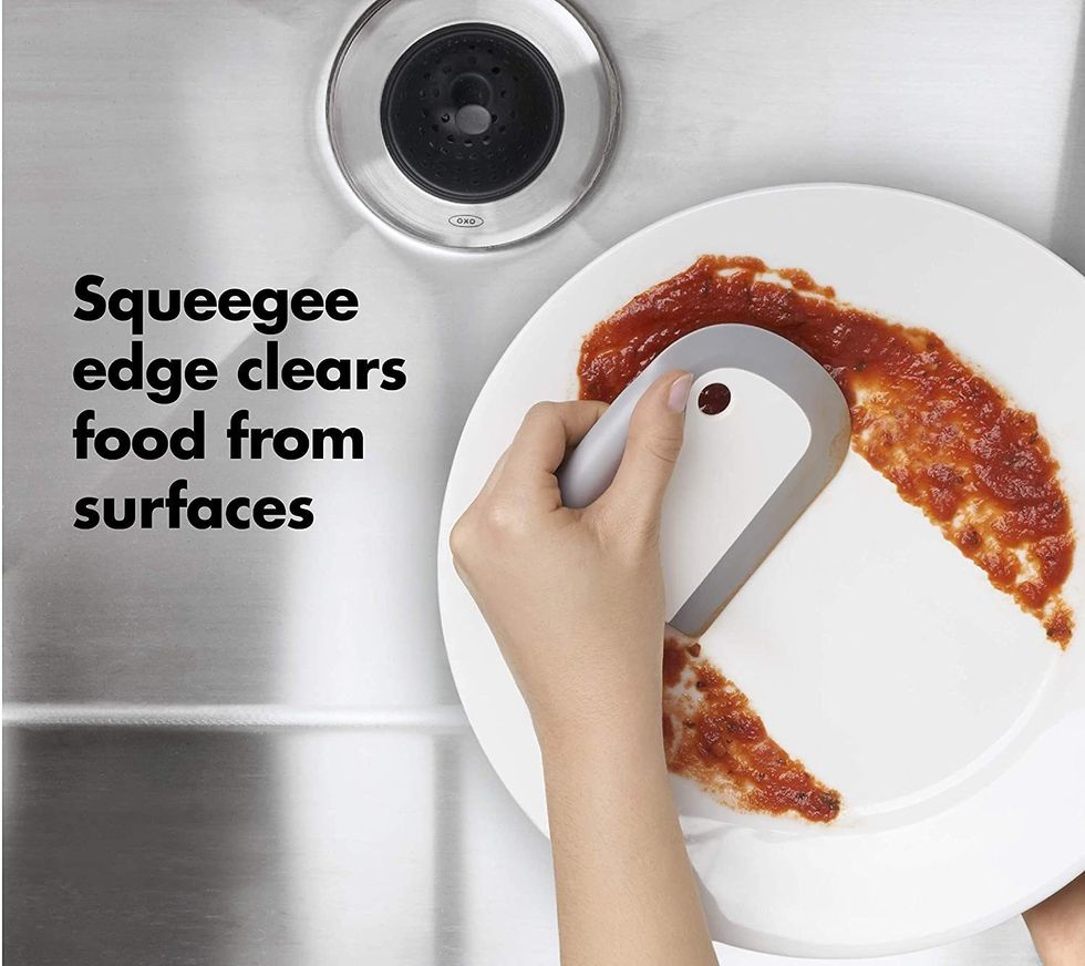 If you're trying to avoid scraping, scrubbing, or touching that yucky-wet-food-mess at the bottom of your sink or the surface of your plates, this food squeegee is a kitchen must-have. It's high-quality, non-slip, and can clean off dirty-dishes and sink-messes easily. Hint from the reviews: use it on your counter-tops to keep them dry after washing-up.