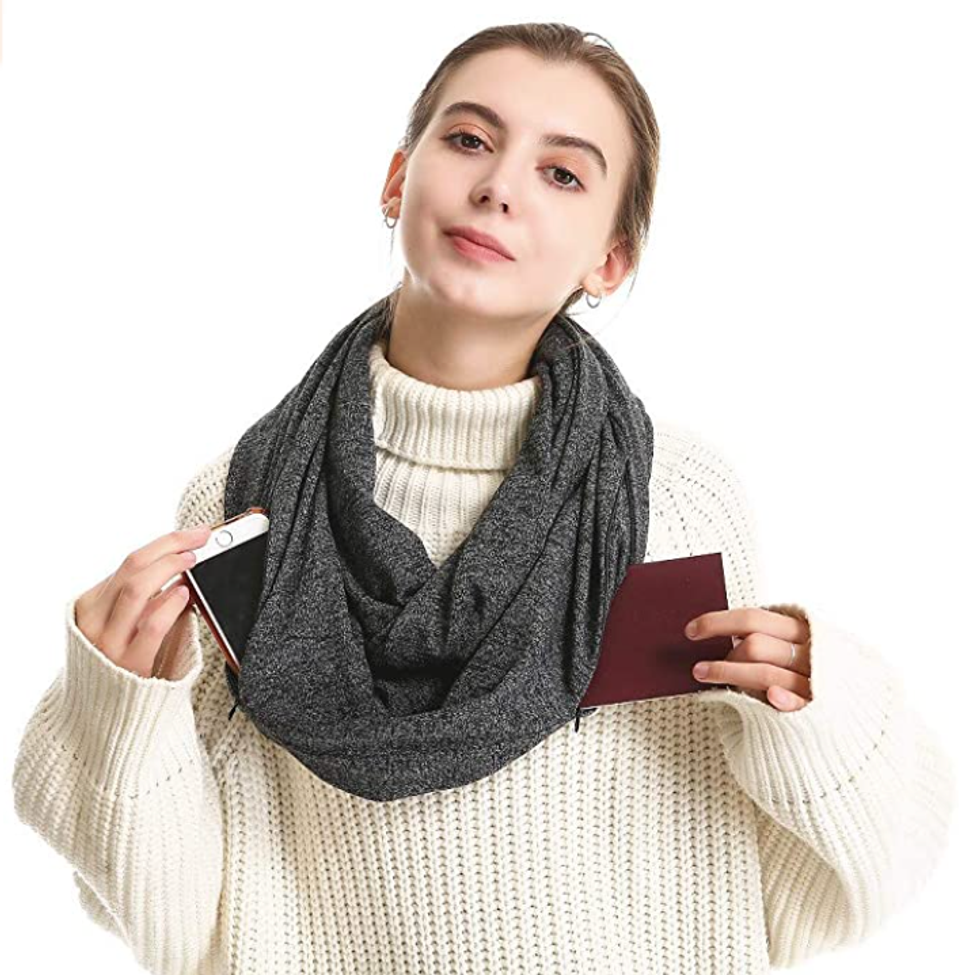 On days when the sun is out and it’s too warm for heavy layers, this cardigan is my go-to pick. It’s sleeveless so that it doesn’t get me too hot, and it fits true-to-size so you don’t have to worry about sizing up. View on AmazonA Scarf With A Hidden Pocket