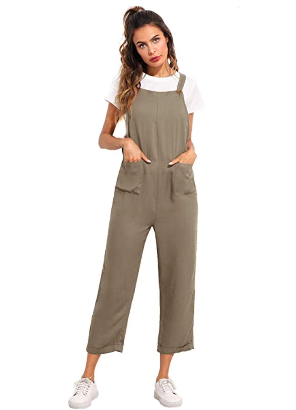 Looking for a jumpsuit that’s a little more fun than just solid colors? Not only does this one come in a ton of fun prints, but I love that it also features pockets. Wear it with flats for a bohemian look, or even white sneakers for some urban exploration.