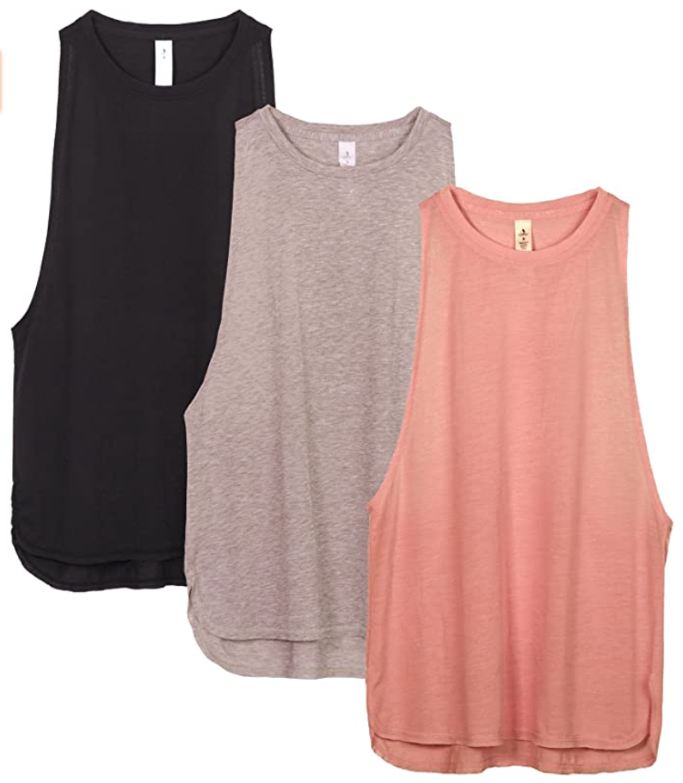 What’s the point in wearing a cute sports bra if no one can see it? These tanks feature extra-wide warm holes — similar to muscle tanks — so that you can create cute layered looks with your sports bra. And if you don’t care about the layering aspect, they’re still lightweight and breathable for heavy gym sessions.