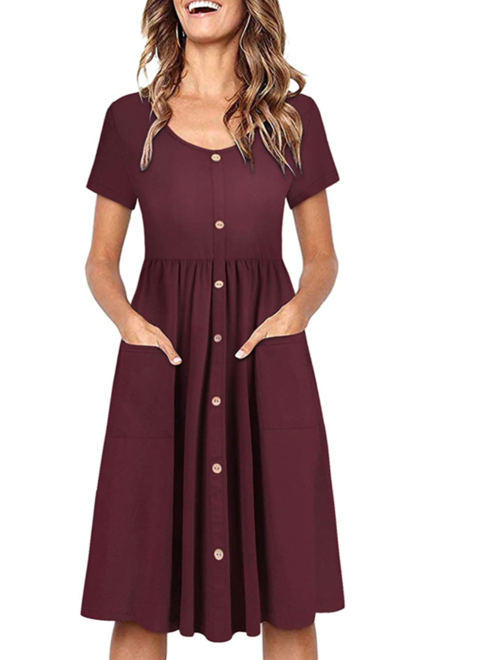 With more than 5,000 positive reviews, it’s clear that I’m not the only one who loves this bodycon dress. It’s form-fitting enough to be flattering, yet not so tight that I’m gasping for air whenever I bend over.
