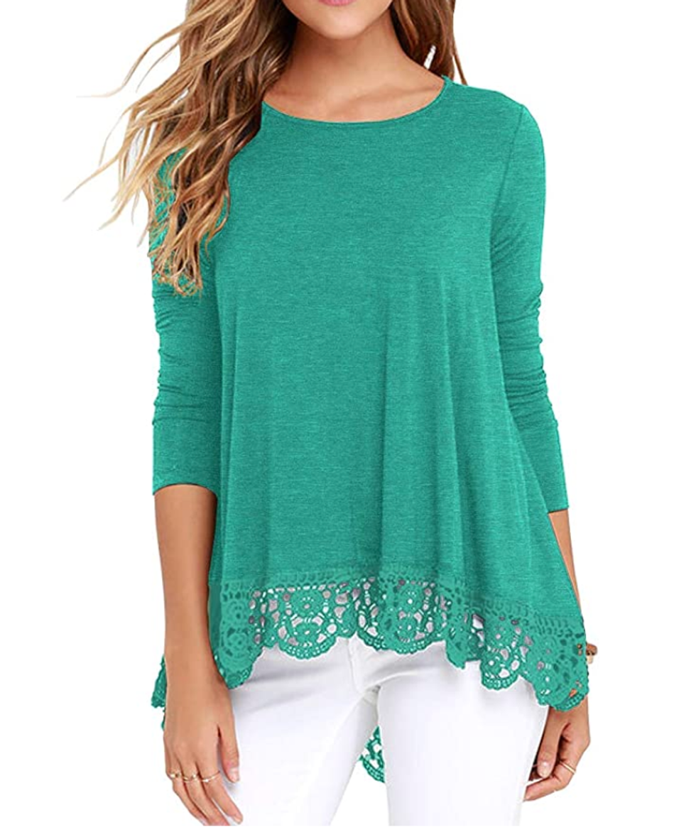 View on AmazonA Long Sleeve Tee With Cute Lace Detailing