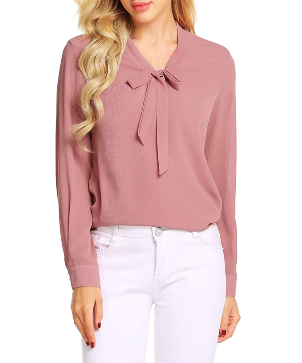 Not wearing pants? Not a problem — just throw on this cute top for your next video call. It’s formal enough that your coworkers will think you look put-together, yet long enough so that if you bend over, they won’t be able to see you’re wearing sweats (or nothing at all.)