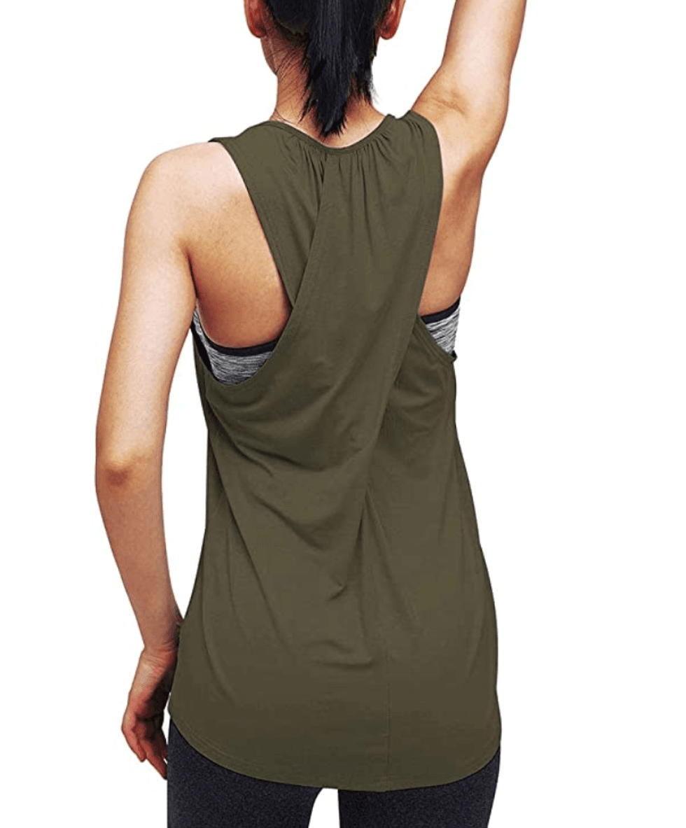 Not only is the cross back cute, but this long workout tank is also available in more than 15 shades. Th large arm holes won’t leave you looking like a sweat-dripping monster, and you can even wear it with jeans on casual days.