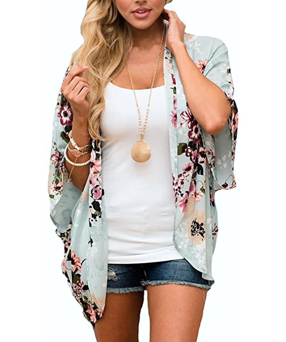 via AmazonThe sheer fabric and batwing sleeves on this cardigan make it totally casual-cute. It's lightweight and has the feel of a mid-length kimono, which adds flare to even the simplest outfit. Choose from a range of sizes and beautiful patterns. My favorites are the green floral and the black-and-white cheetah print.