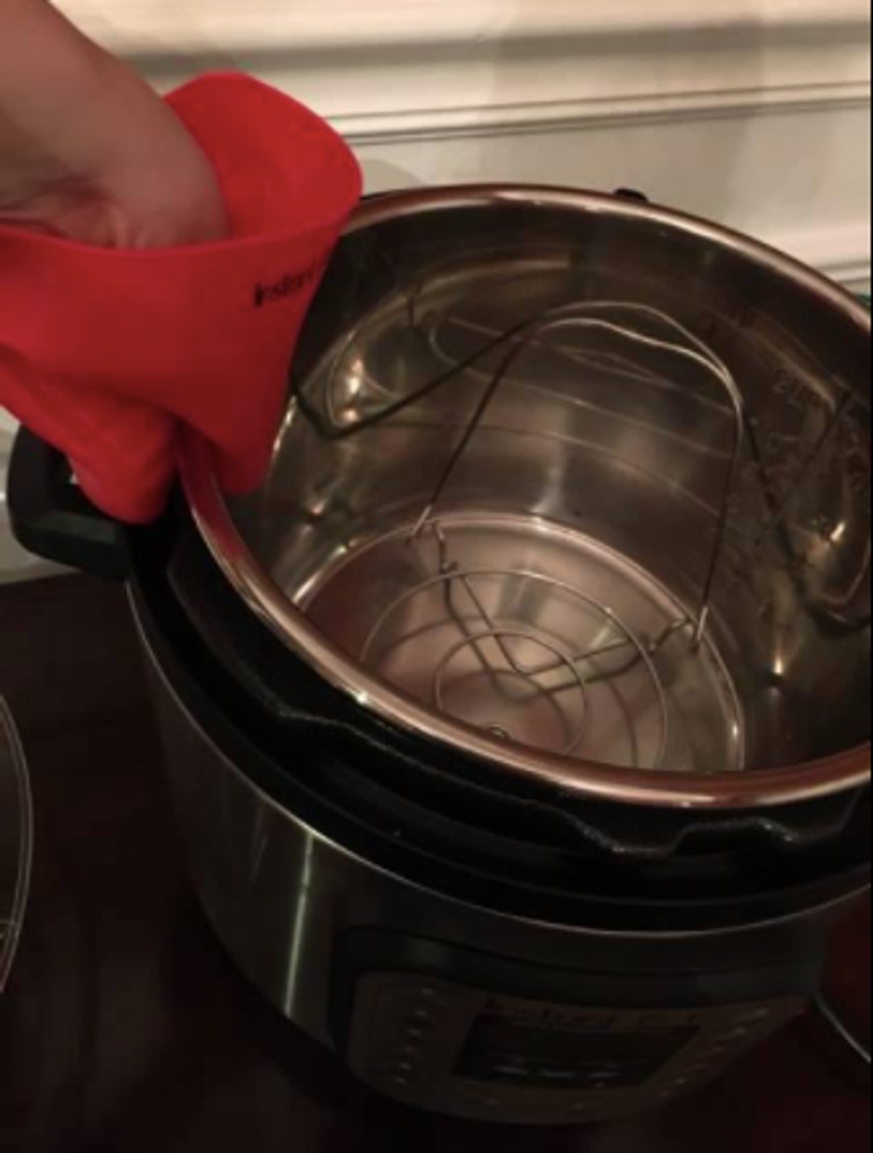 Regular size oven mitts are just too big to deal with taking the liner out of your Instant Pot. Enter these little mini mitts. You can even use them to take stuff out of the microwave or toaster oven.
