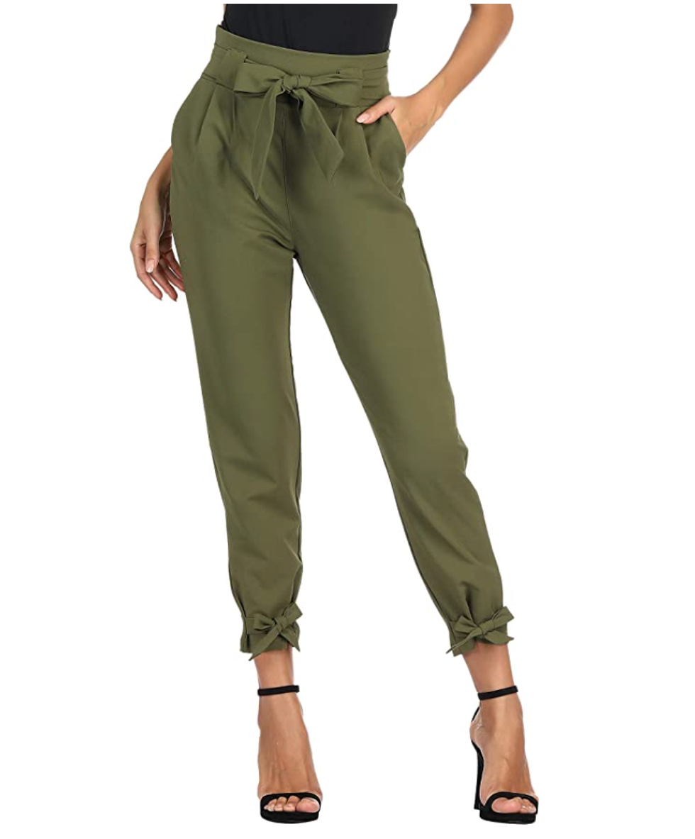 via AmazonNot only do these fashionable pants fit true to size, but they're perfect for everything from happy hour to brunch. I like to wear a black bodysuit with the army green color. Or if I'm feeling adventurous, I wear a yellow top with the navy version — trust me, the colors look good together.