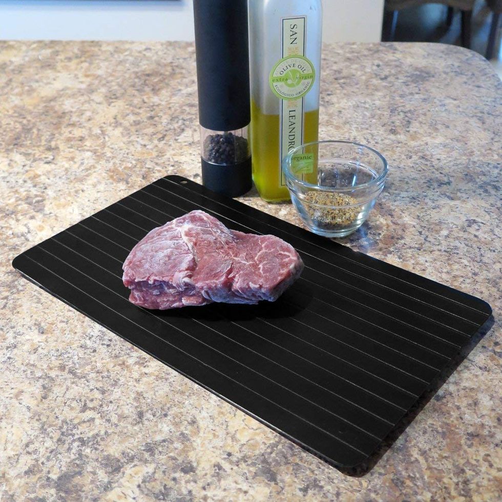 Have you ever come home hungry, only to find that all your meat and vegetables are frozen? Same here, which is why I use a defrosting tray like this one. It helps your frozen ingredients thaw within about one hour, plus it's an easy way to prevent yourself from ordering $30's worth of sushi to your house, again, for the fourth time this week. There's no electricity or batteries required, plus it's compact enough that it's easy to tuck away into storage once you're done.Trending