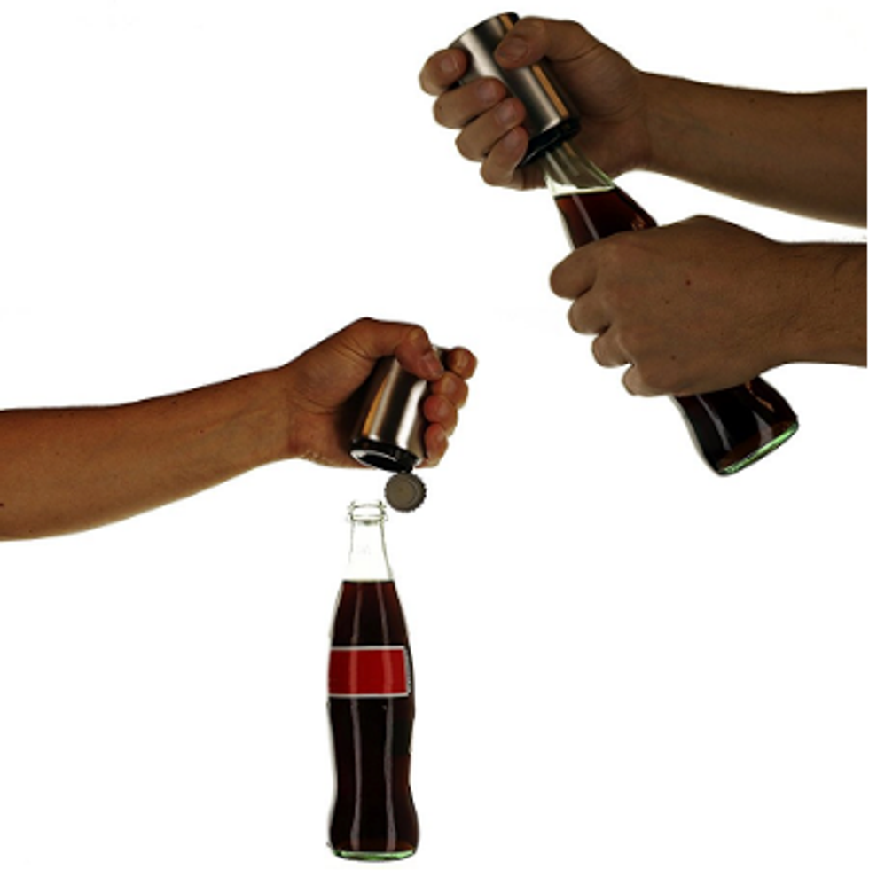 Just place the bottle opener on your cap and push it down. It doesn't bend the bottle cap! It also has a built-in magnet that catches the cap so you don't have to go chasing them all over your kitchen floor.Love Hot Dogs? This Hot Dog Toaster Is for You