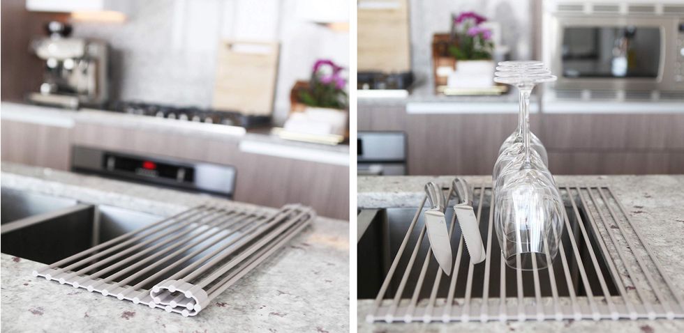 I only have one pair of kitchen tongs, and they're plain silver. This made me sad. That's why I went Amazon-shopping for this set of three kitchen tongs, which come in bright colors and have earned an amazing 4.8-star average. Now I'm happy!Save Space With This Roll-Up Dish Rack