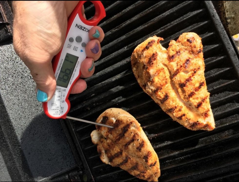 Ideal for barbecuing or sautéing, this instant-read meat thermometer lets you easily check the internal temperature of meat so you can be sure you've cooked it enough (without overcooking!). It's especially useful for chicken breasts.