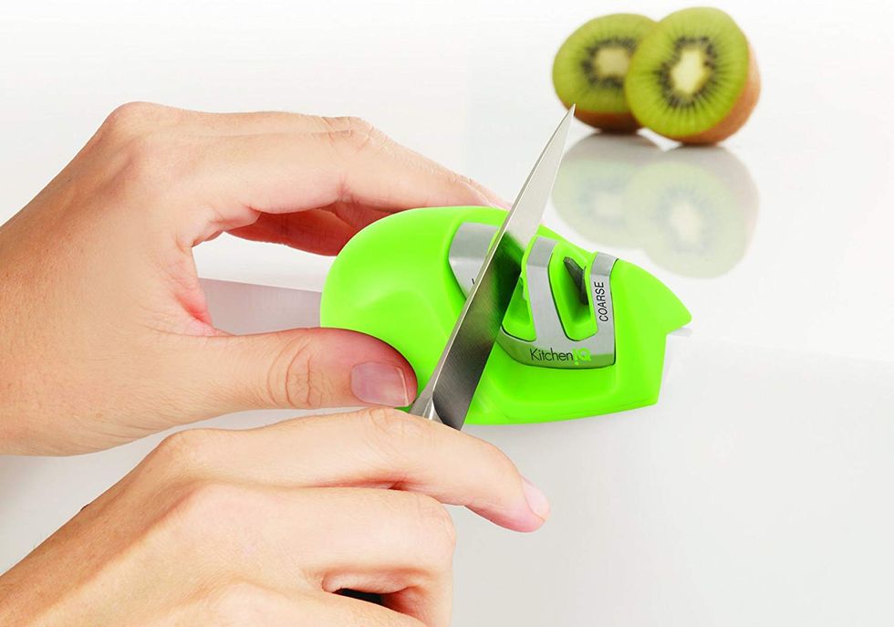There's no bigger first-world problem than your hand growing uncomfortably cold as you hold onto your tumbler, so make sure to grab this tumbler handle. You can grab it in more than a dozen fun colors, and it's designed to fit onto practically any tumbler. Completely BPA-free as well as recyclable, there's even a non-slip layer of rubber on the inside that helps prevent your tumbler from sliding out while you sip.A Handy Tool That Sharpens Your Dull Knives