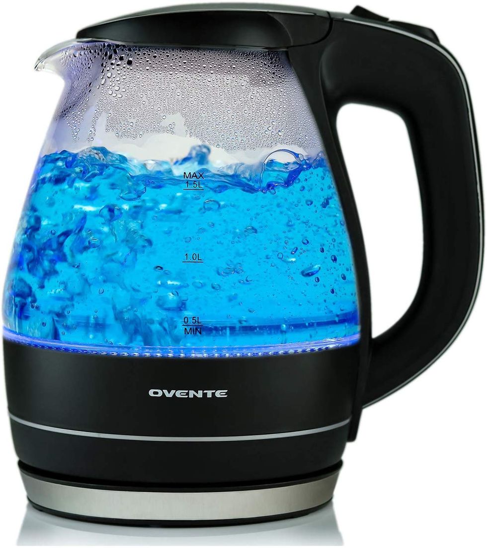 Personally, I like to keep my makeup spread out all over the bathroom just to piss my boyfriend off — but you? You're a nicer person than I am, which is why you keep your makeup collection in this chic organizer. It's made from durable, transparent acrylic that lets you easily see what's inside each drawer without having to open them, and the black mesh padding stops your items from sliding around. There are slots for your lipstick, eyeliner, brushes, and more, plus many Amazon reviewers raved about how it's "well made."An Electric Kettle That Boils Water In Just 7 Minutes