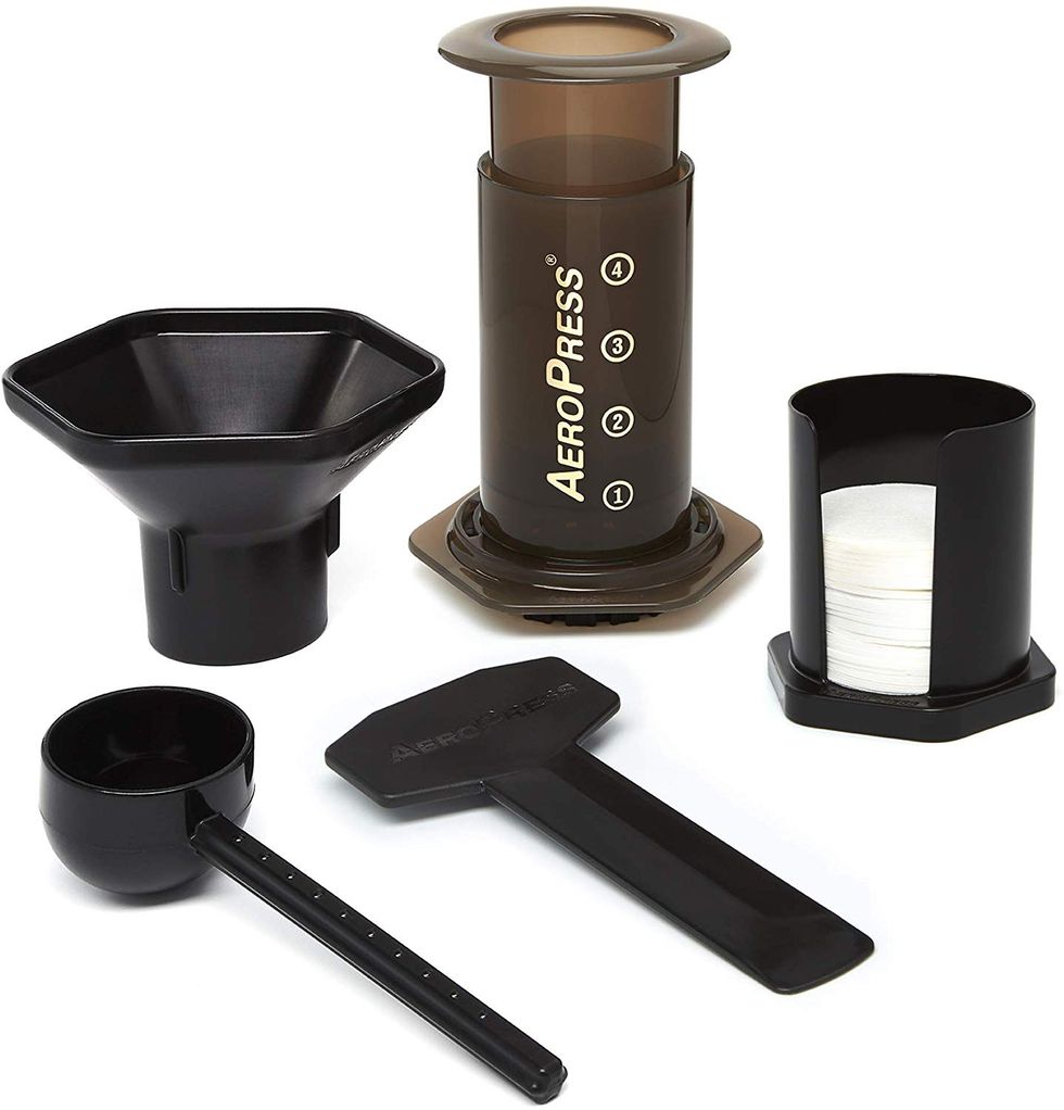 If you consider yourself a functional adult, it's time to throw out your drip coffee maker in favor of this French press. The four-level filtration system ensures that no coffee grounds make their way into your final cup of Joe, and it's made from rust-resistant stainless steel, as well as heat-resistant borosilicate glass. Each order comes with a brewing guide in case you have zero ideas how to use a French press (don't worry — this was me a few months ago), plus it can even help improve the bitter taste of your grounds.A Espresso Maker You Can Use While Camping