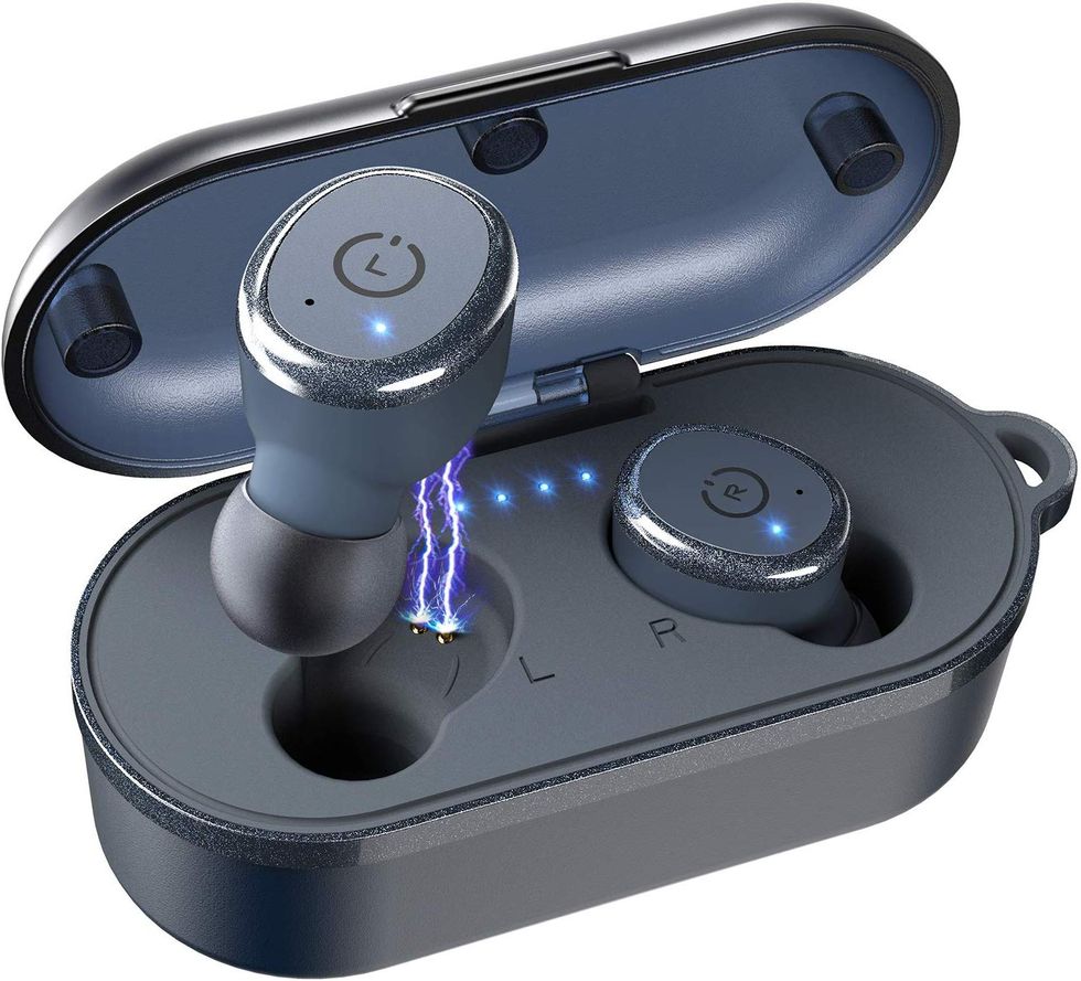 When I say "waterproof," I mean it — these Bluetooth earbuds can be submerged in up to 1 meter of water for about 30 minutes. I personally can't hold my breath that long, so I just wear them to the gym since I know my sweat won't impact how they work. The battery lasts for more than four continuous hours when fully charged, and if you use them in conjunction with the compact charging case, it can even last for up to 14 hours. Grab them in five fun colors: blue, black, grey, white, or khaki.This HD Tablet That's Shockingly Affordable