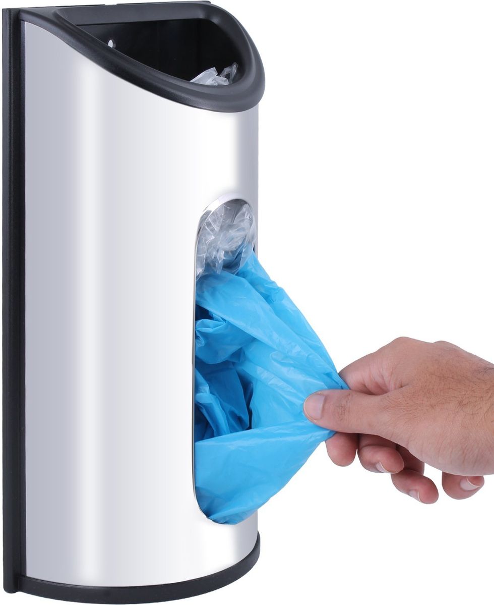 Everyone has a bag full of bags stuffed under their kitchen sink — until they get one of these! You can stuff bags in the top and then pull them out of the dispensing slot whenever you need them.This Toilet Bowl Light Will Light up Your Life