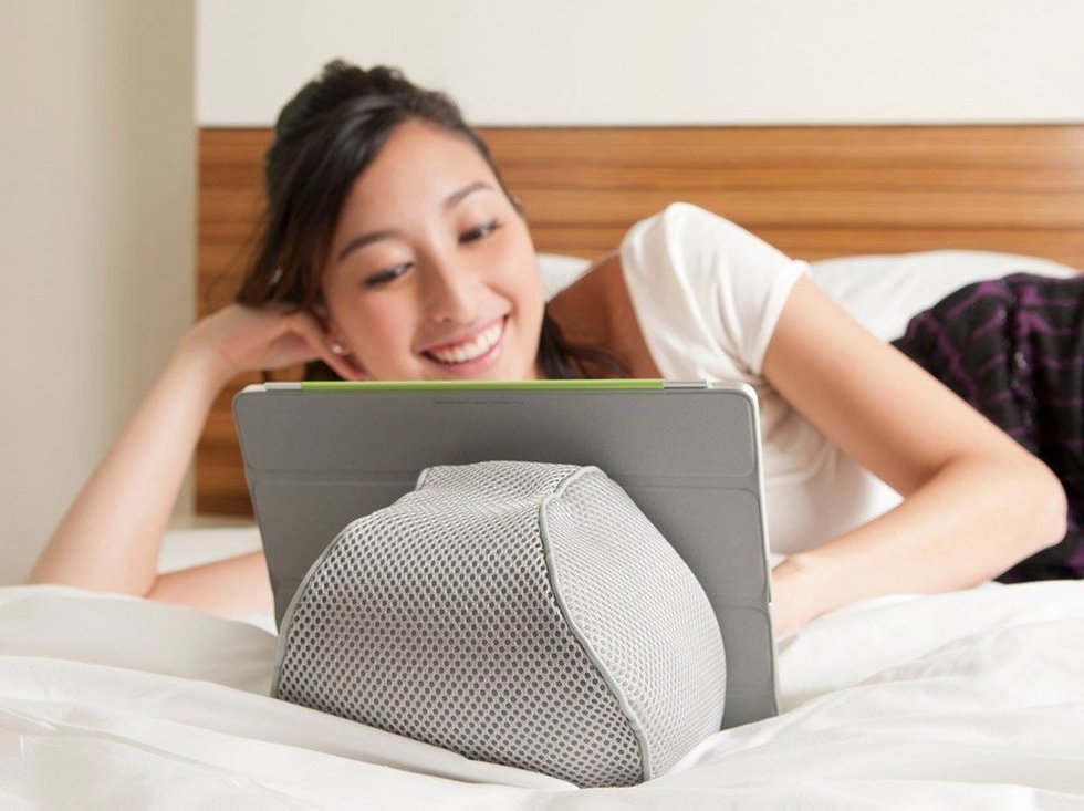 Plenty of wooden or metallic tablet stands aim to help you get cozy in bed or on the couch. This stand takes comfort to another level by being a mesh bag filled with micro-beads. A small silicone base fits any iPad and most tablets in landscape or portrait mode. The plush base conforms to wherever you place it and is gently on the skin than its hard counterparts.