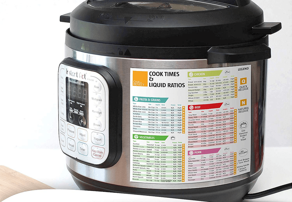They'll never lose this Instant Pot cooking time cheat sheet since it sticks magnetically right onto the side of the gadget! It includes cooking time and liquid ratio for over 90 common foods so they'll never have to frantically Google that info when they're just trying to get dinner on the table.This Self Massaging Stick Is Cheaper Than The Spa