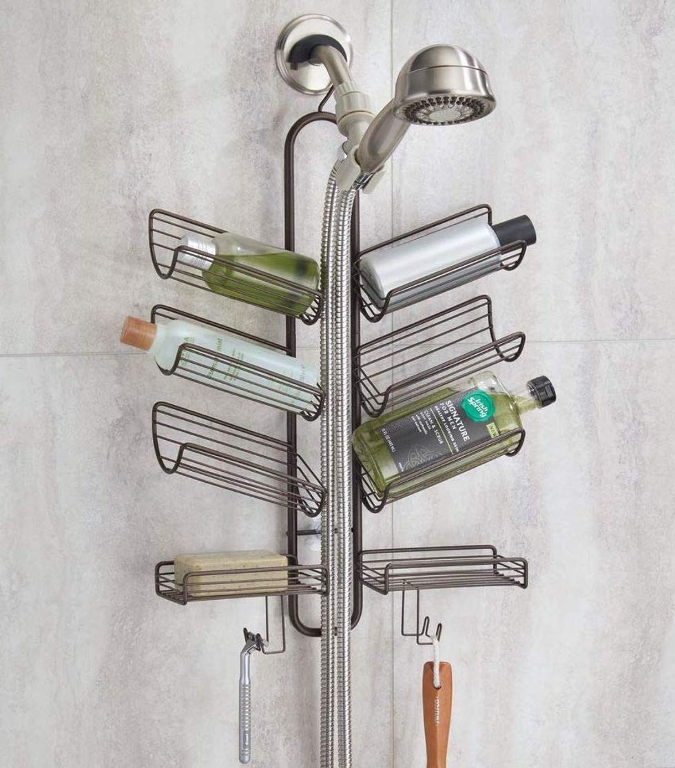 Keep your products organized with this brilliant shower caddy. Six, angled shelves hold onto your shampoos, conditioners, body washes, and more, allowing gravity to grant easier access once you’re towards the end of the bottle. Two flat shelves at the bottom will hold your bar soaps and hooks below can hold onto loofahs or secure razors. There are several metal finishes, so if you have hard water, you should pre-treat it to avoid rust.This Multifuctional Stool