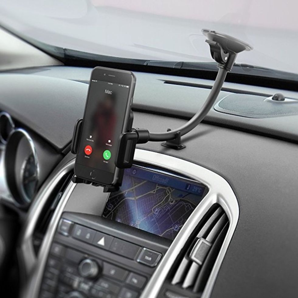 With it's 8 inch long arm, this universal phone mount brings your phone closer to you while you drive. If your car's dashboard isn't flat enough to mount a phone holder, this Windshield Phone Mount is what you're looking for. The grip is universal so it will hold any phone and it rotates for both horizontal and vertical orientations. It even comes with a little suction cup support for extra stability.This Personal Ceramic Portable-Mini Heater is Perfect to Keep on Your Desk to Keep the Chill at Bay