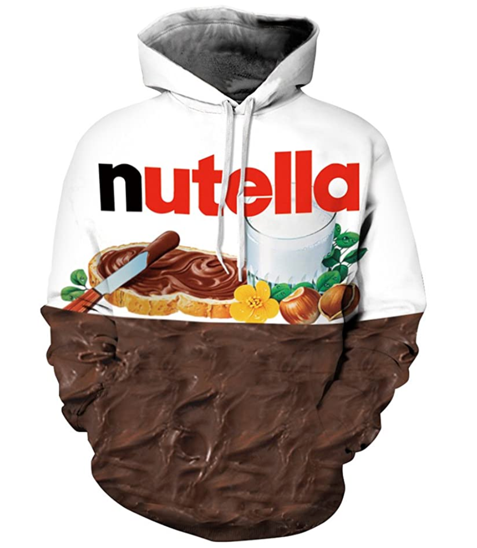 Nutella is delicious, but you know what else is also tasty? This Nutella hoodie — in the non-literal sense, of course. I haven't tried eating mine (though the print is so rich I can't say I haven't thought about it) so I can't tell you how the flavor is or isn't, but it does have a slight stretch to it that makes it almost too comfy. One reviewer even wrote that "The material is smooth and soft, and the design is bright and over-the-top."