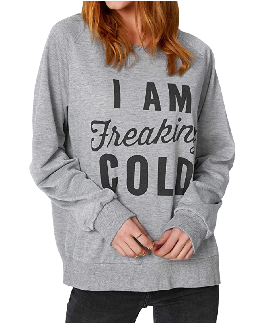 On the days where I don't feel like a space cat riding a taco, I just pop on this sweatshirt whenever I'm feeling cold. And in case anyone else was wondering how my body temperature is doing, they can just read the front and find out for themselves. My favorite part? It's not super thick, which means you can wear it in all seasons.