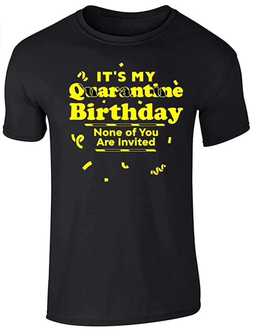 Happy birthday! Except oh wait — you're in quarantine and no one can come over. That's okay though, because you still have this shirt to keep you company. It's made from 100% cotton for comfort in any season, plus there are seven colors to choose from: black, grey, Heather green, royal blue, and more.