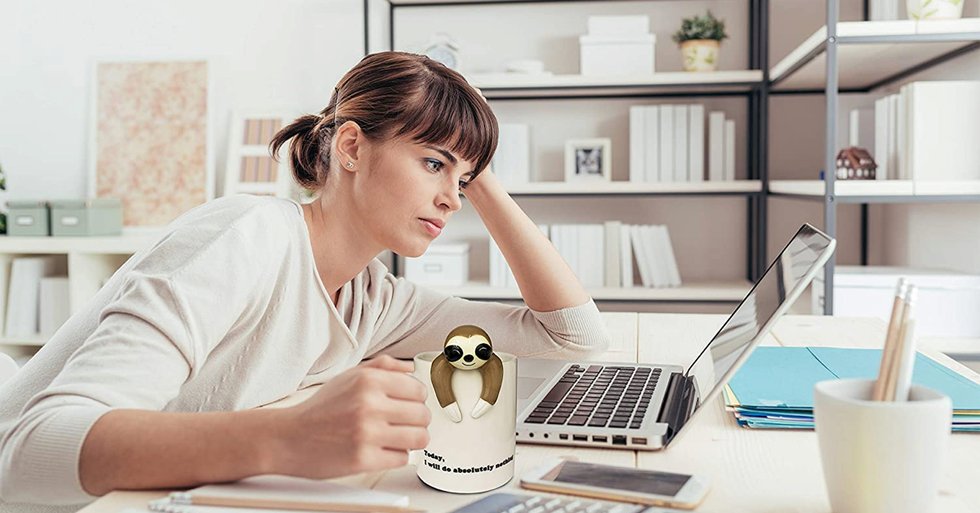 A Mug With An Adorable Sloth Hanging On The Rim