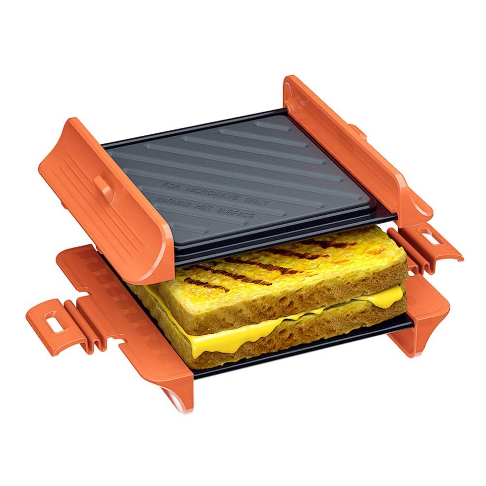 Microwave trays are a dime a dozen, particularly for bacon, but this one cares about your heart. By draping bacon slices on the bars, it cooks the meat in the air instead of letting it stew in its own fat. The fat drips down into the tray for easy cleanup while also preventing those big, popping splatters. This Microwave Panini Press