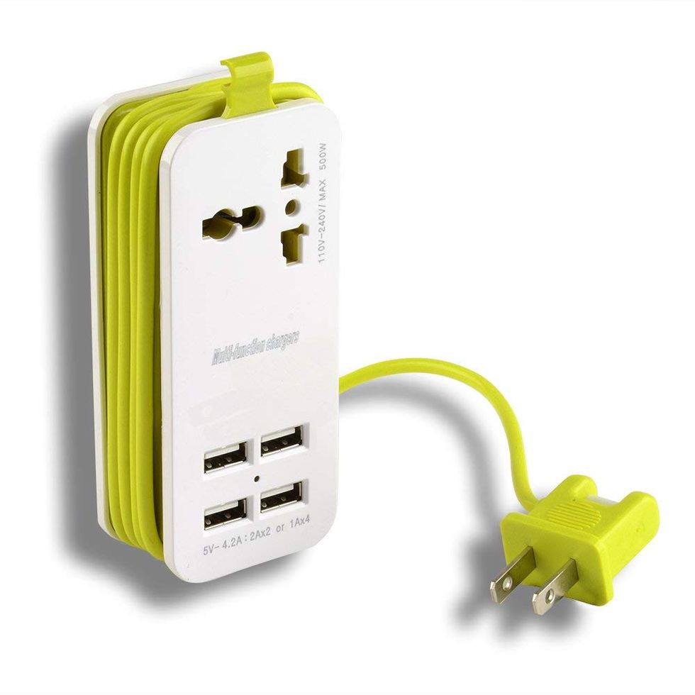 Leave your bulky international adapters behind — this one transforms into 4 different adapter styles and is also easily stored as one small block that will easily fit into your suitcase. It works in 150 different countries! All you have to do is match the correct colors to create the adapter that fits your needs. It also comes in a box that doubles as a guide to the 48 most popular travel destinations.This Portable Power Strip Is Another Great Gadget for Travelers
