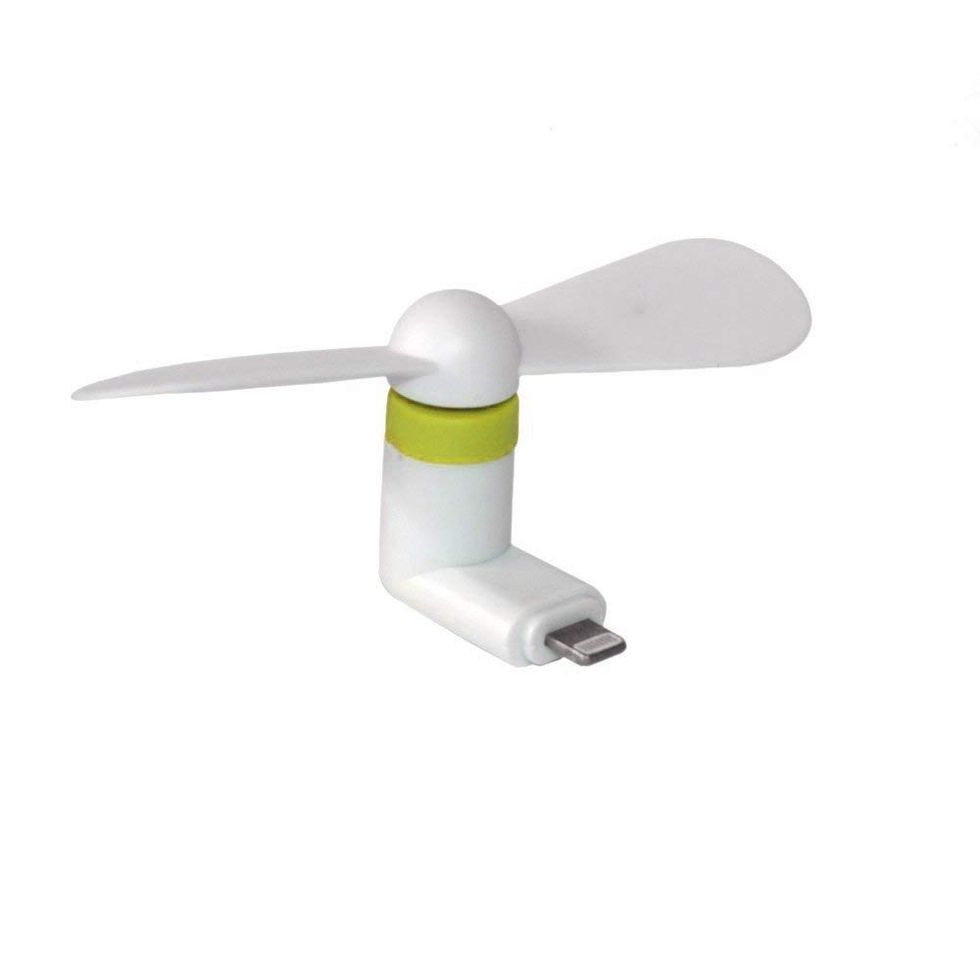 I actually recommend getting at least two — you can keep one in your car and one in the shower! Use them to easily remove condensation and keep everything clean without leaving any streaks behind. This one has a suction cup on the bag so you can store it on a flat surface and just pop it off whenever you need it. And it has a fun li'l guy as the handle. What's not to love?This Mini Fan Plugs Right into Your Phone