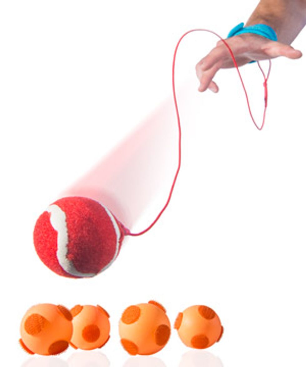 This pick up ball with velcro ball targets will keep them busy for a while, and they can play solo (hallelujah)! Simply attach the elastic strap to your wrist then fling the tennis ball at the velcro balls to see how many you can pick up. Simple concept but lots of fun!This Family Game With Fun Challenges