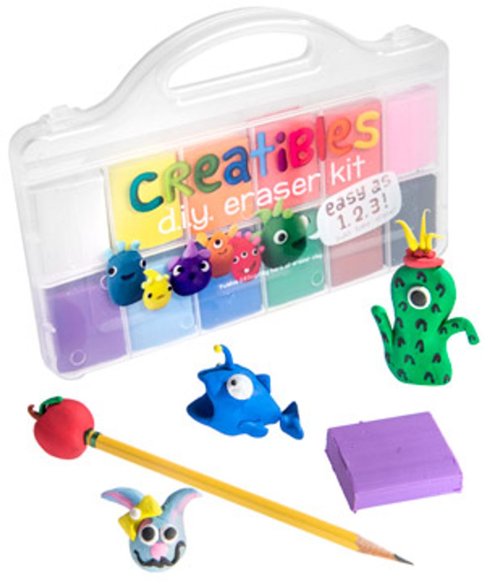 Speaking of snacks, here's an easy way for kids to make their own campfire treat, no actual fire involved! This S'mores maker goes right in the microwave where it expertly melts the marshmallows and chocolate onto graham crackers for a yummy snack without involving EMTs or fire departments.This DIY Mini Eraser Kit For Creative Fun
