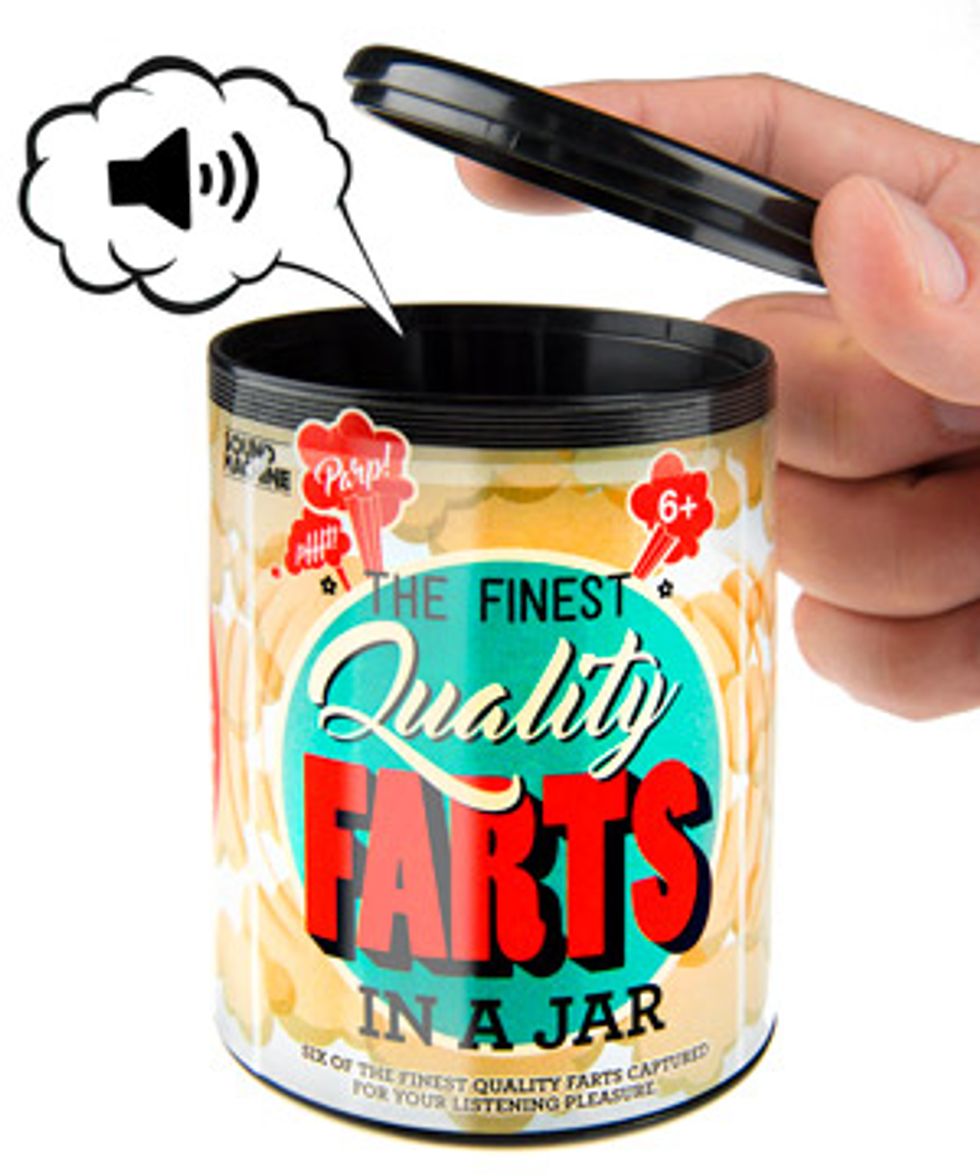This 2-D and 3-D Kanoodle puzzle game looks simple but is actually pretty involved. Kids can play over 100 brainteasing puzzles with this little kit that comes with it's own carrying case. If they get too good at the original version, they can level up to the genius edition!This Farts In A Jar Toy For Good, Clean Fun