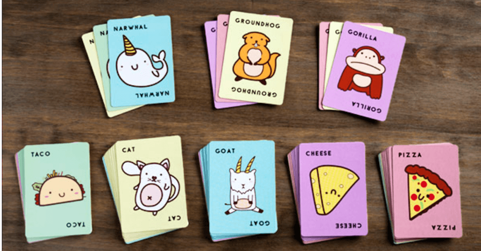 This Taco, Goat, Cheese, Pizza card game is great for family game nights, and it's easy for kids to play on their own, too. It's a fast-paced matching game that builds to a frenzied pace. Exciting enough to get their energy out during rainy days when they can't get outside to run it off!This Flowing Play Sand For Building